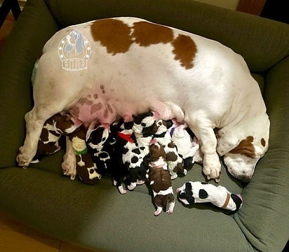 Lulu & Gunsmoke had 9 beautiful puppies we have 5 boys & 4 girls. There is 5 Black & Whites & 4 Mahogany && Whites.